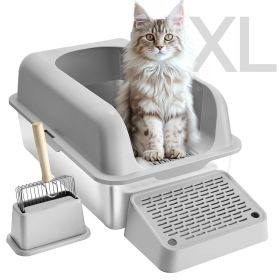 Stainless Steel Cat Litter Box, XXL Extra Large Jumbo Metal Litter Box, with Large Cat Litter Shovel, Anti Leakage Sand Pedal